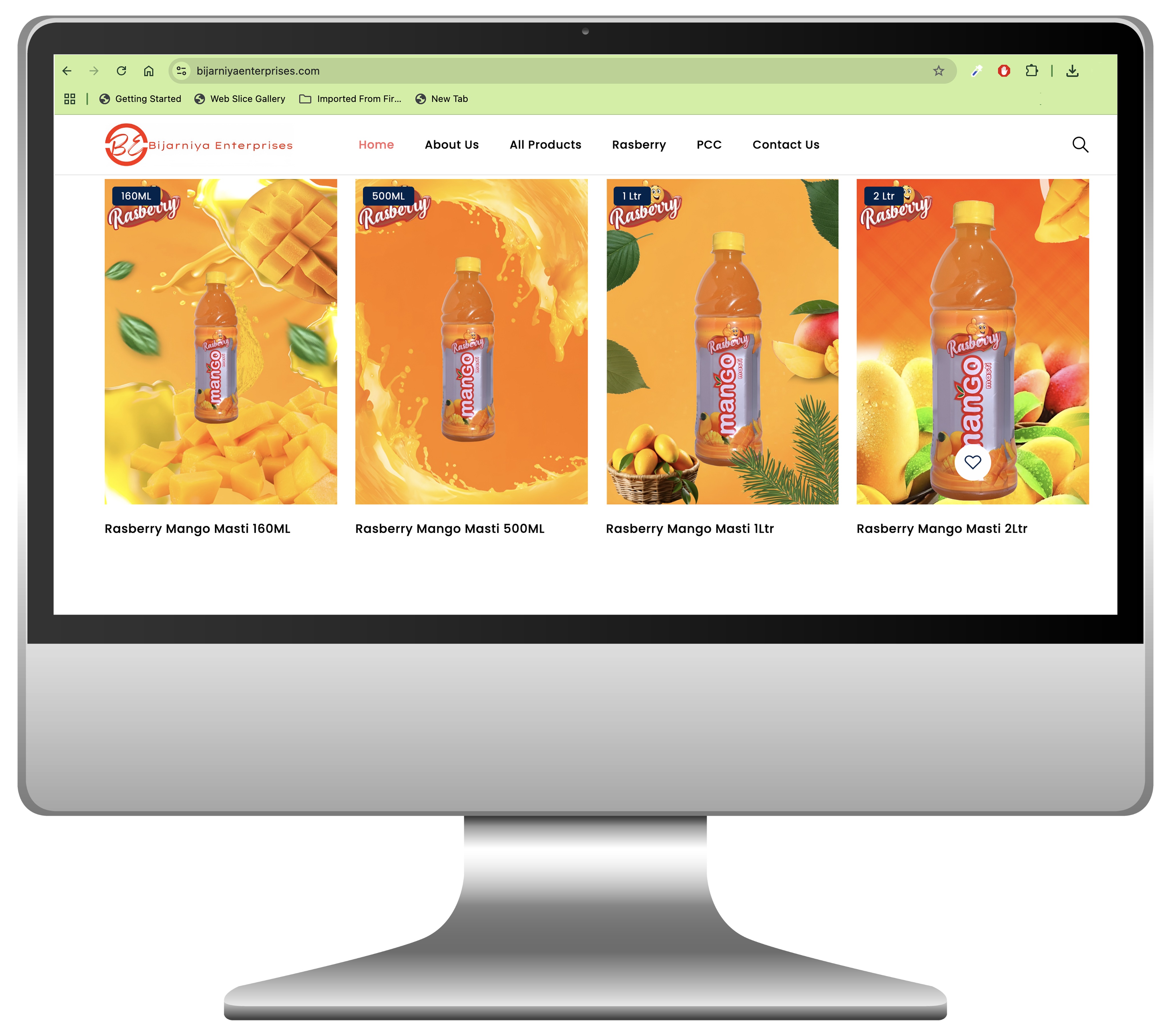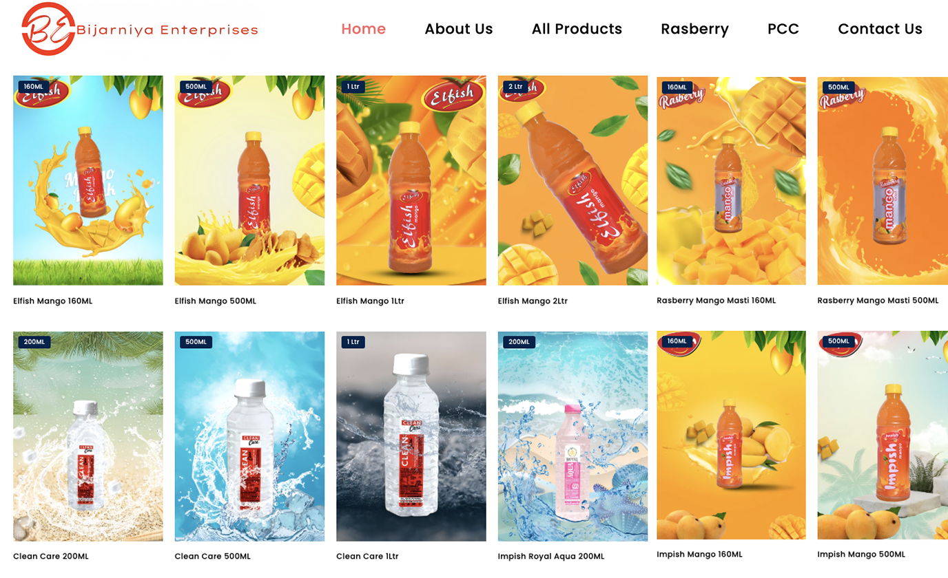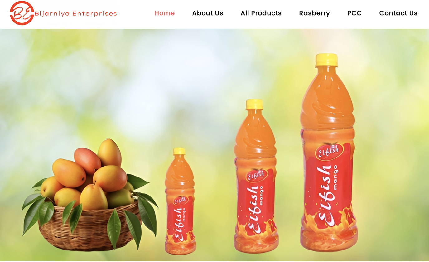 Bijarniya Enterprise is a growing beverage brand specializing in high-quality mango juice bottles and pure drinking water bottles. The objective was to design a clean, product-focused website that highlights their offerings, builds trust, and makes it easy for customers to learn about and contact the business.