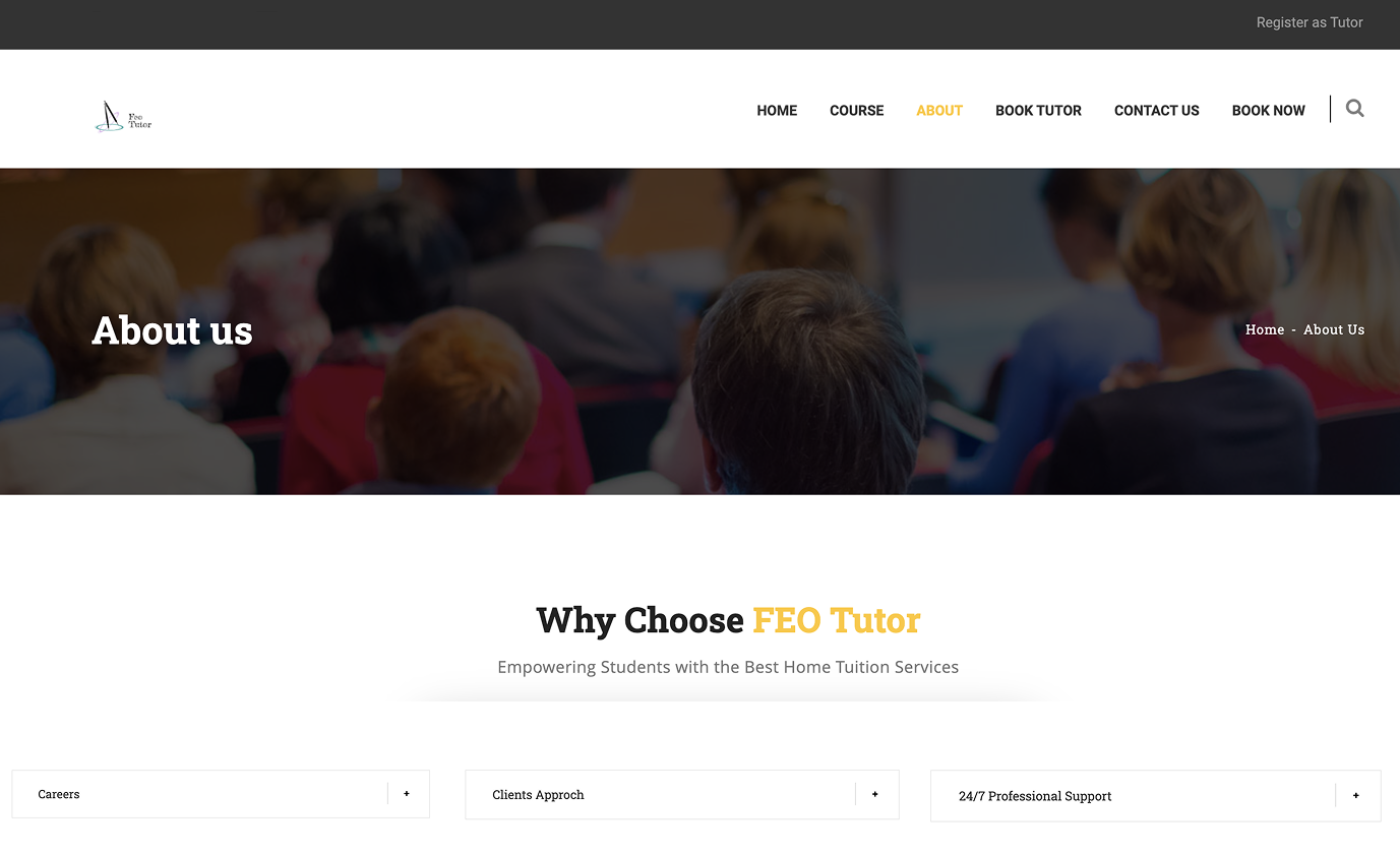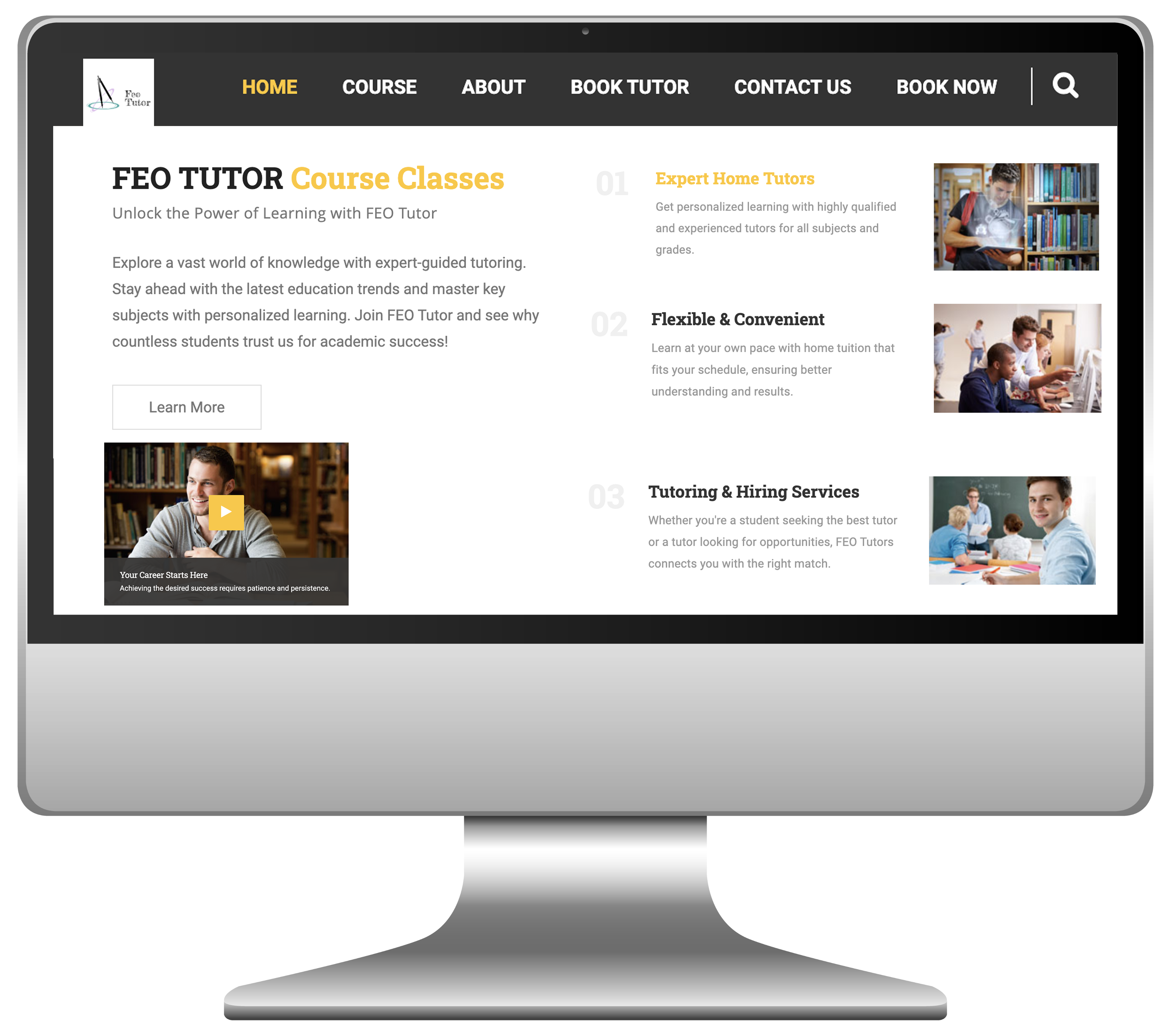 The Feo Tutor website is built with a clean and minimal architecture focused on performance, simplicity, and user experience. Developed using basic web technologies like HTML, CSS, and JavaScript, the structure ensures fast load times and easy navigation. The layout includes key sections such as tutor listings, subject categories, contact forms, and responsive design for mobile accessibility. The codebase is lightweight, SEO-friendly, and organized for easy updates and future scalability.